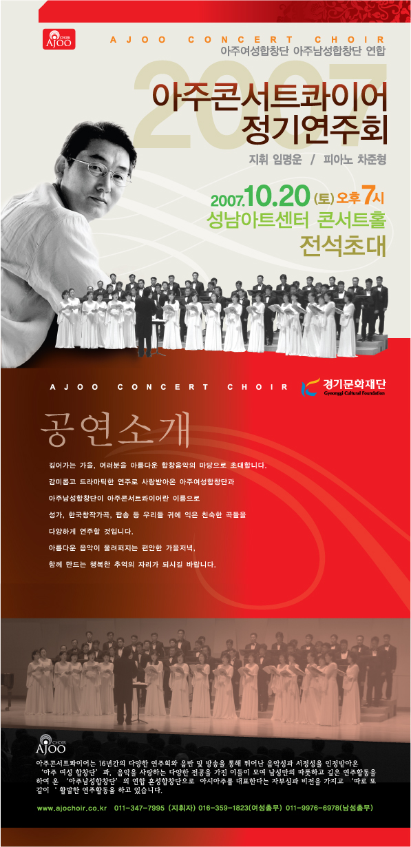 아주콘서트콰이어 정기연주회에 초대합니다. 페이지 정보 작성자 아주남성합창단 작성일07-10-04 10:32 조회10,957회 댓글0건 관련링크 이전글 다음글 수정 삭제 목록 본문 댓글목록 등록된 댓글이 없습니다. 이전글 다음글 수정 삭제 목록