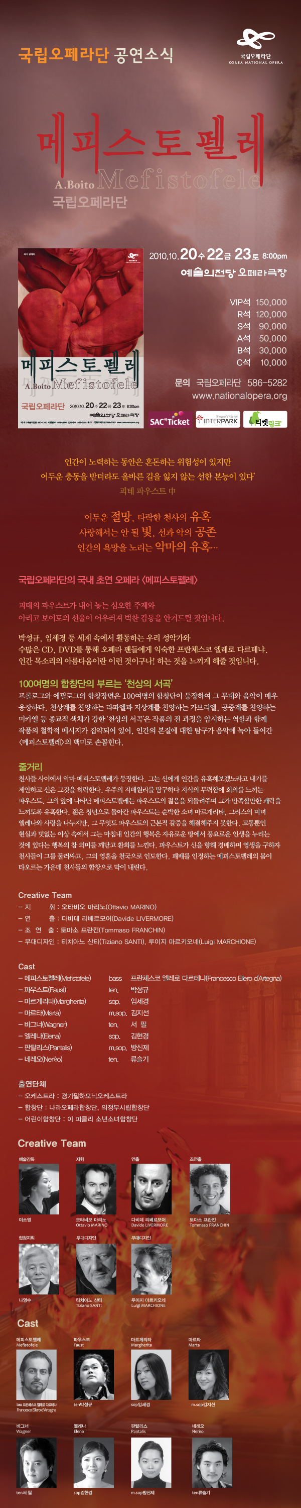 국립오페라단에서는 다음과 같이 오페라 <메피스토펠레>를 무대에 올립니다.