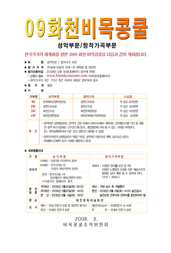 ///09화천비목콩쿨(성악/창작가곡)게최요강/// 페이지 정보 작성자 뮤직메이커 작성일09-03-22 21:38 조회14,311회 댓글0건 관련링크 이전글 다음글 수정 삭제 목록 본문 www.bimokconcours.com 댓글목록 등록된 댓글이 없습니다. 이전글 다음글 수정 삭제 목록